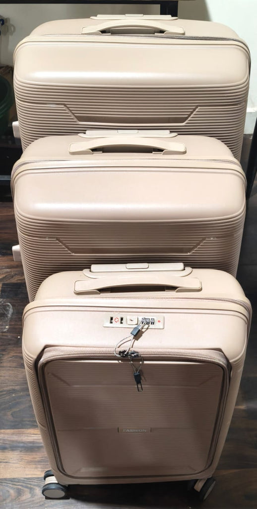 Travel smart and in style with this 3-piece ABS hard-shell trolley luggage set. Designed for durability, convenience, and security, each suitcase features a robust ABS exterior, smooth 360° rotating wheels, and a multi-level telescopic handle for easy maneuverability. this set covers all your travel needs, whether it's a weekend getaway or an international holiday.