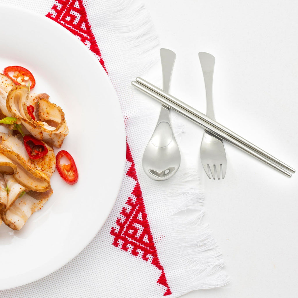 Picnic Dinner Spoon Fork Chopsticks Cutlery Tableware Set Traveling Spoon Set High Quality Cutlery Set (4 PC / 1 Set)