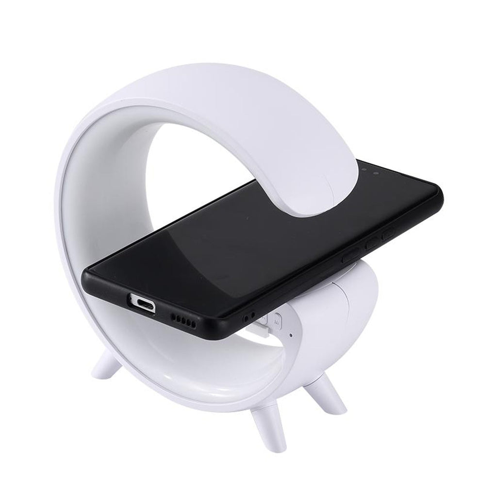 Smart Alarm Clock with G-Shape RGB Light Bluetooth Speaker, Wireless Charging for Bedroom, Living Room, and Game Room (1 Pc)
