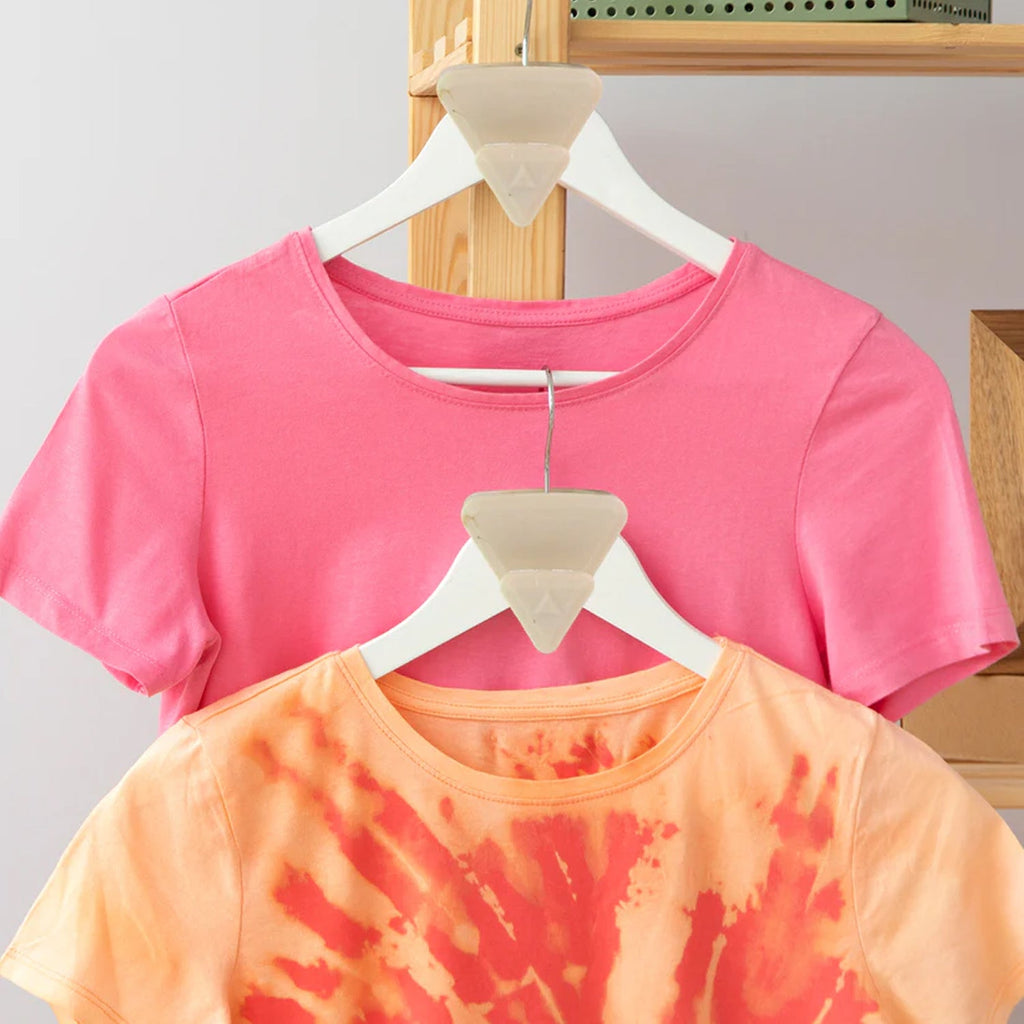 Optimize your closet space with this 1-piece Multi-Functional Triangle Hanger Connector. These compact and sturdy clips are designed to connect one hanger to another vertically, allowing you to cascade your clothes and increase storage efficiency. Crafted from durable plastic, these triangular hooks are lightweight yet strong enough to hold multiple garments without bending. A practical solution for organizing wardrobes in homes, dorms, or laundry spaces.