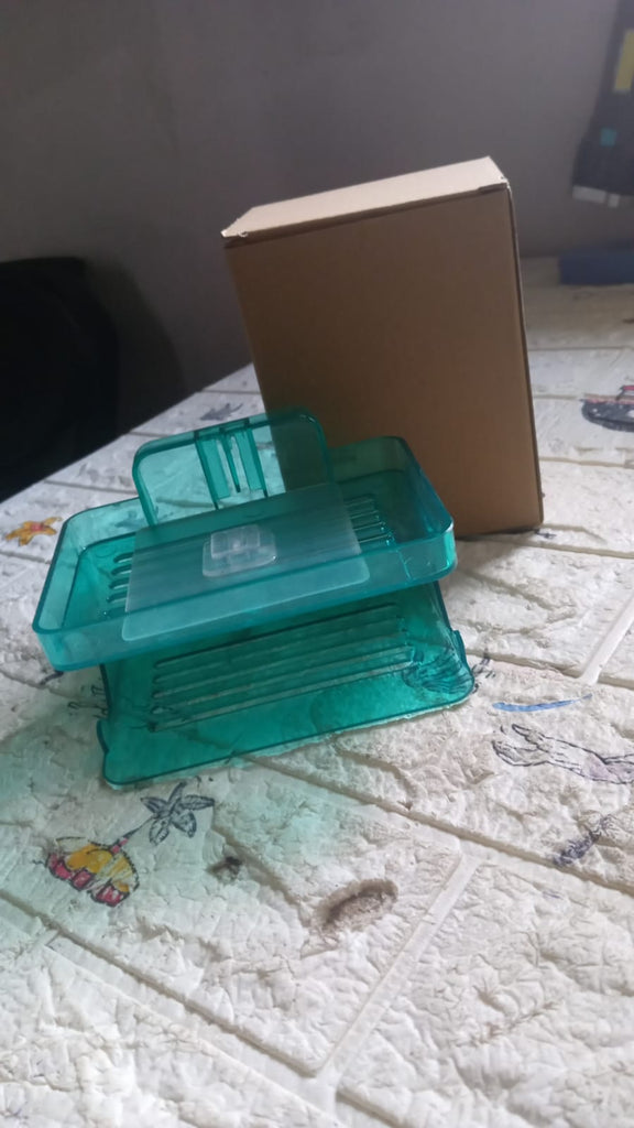 • Double layer Bathroom Soap Cases Self-adhesive Hook; Material: High-quality ABS Plastic.