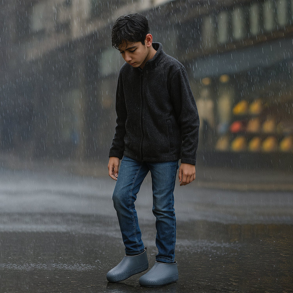 Protect your child’s footwear during rainy days or messy outdoor activities with this pair of waterproof silicone shoe covers. Designed in a flexible, form-fitting shape, these covers provide a snug fit over shoes to keep them dry, clean, and safe from mud, water, and dust. Easy to carry and reuse, these are a smart choice for monsoons, school commutes, and trips.